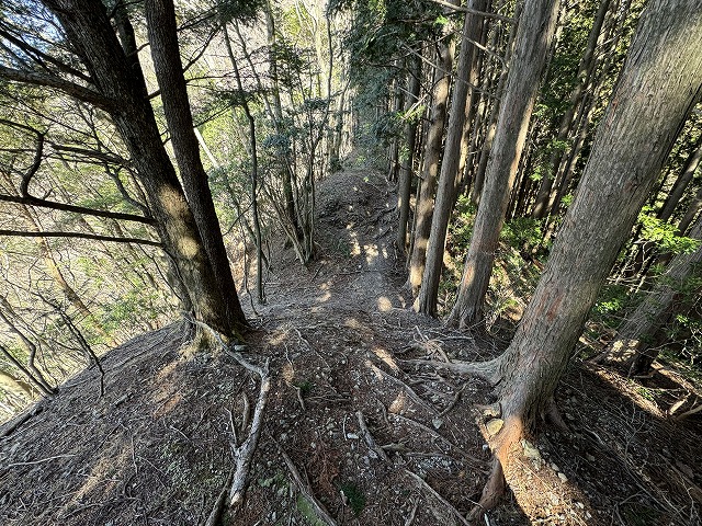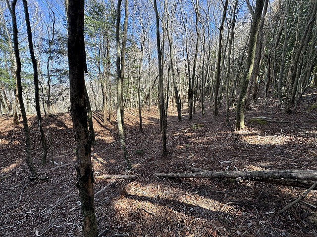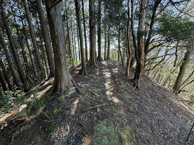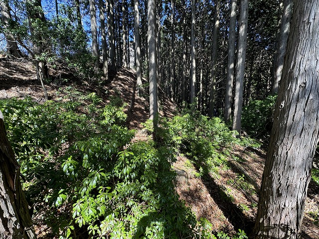 堀切は竪堀状に落ちて腰曲輪に繋がる。